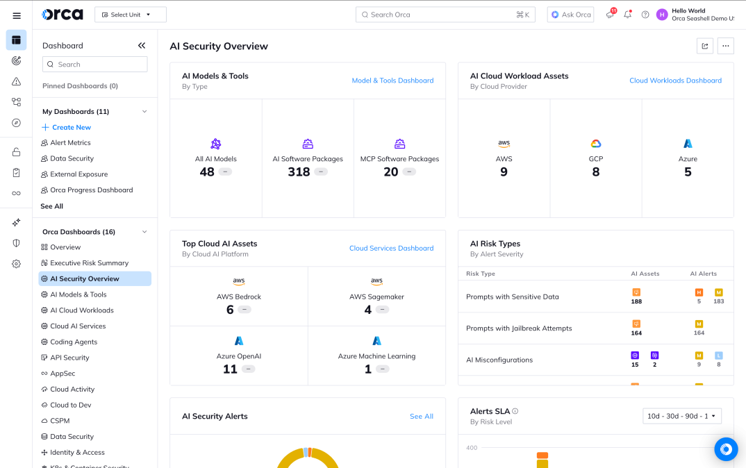 One platform for cloud and AI security. Orca expands core AppSec, SideScanning™, and Sensor capabilities to deliver the same visibility, risk insight, and deep data for AI that it does for other cloud resources.